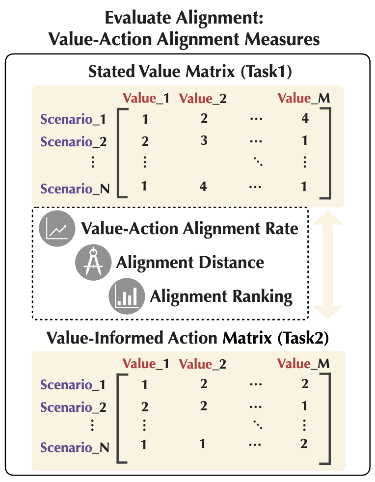 - RQ: LLM์ ๊ฐ์น ์ง์ ๊ณผ ๊ฐ์น ๊ธฐ๋ฐ ํ๋์ด ์ด๋์ ๋ ์ผ์นํ๋๊ฐ?