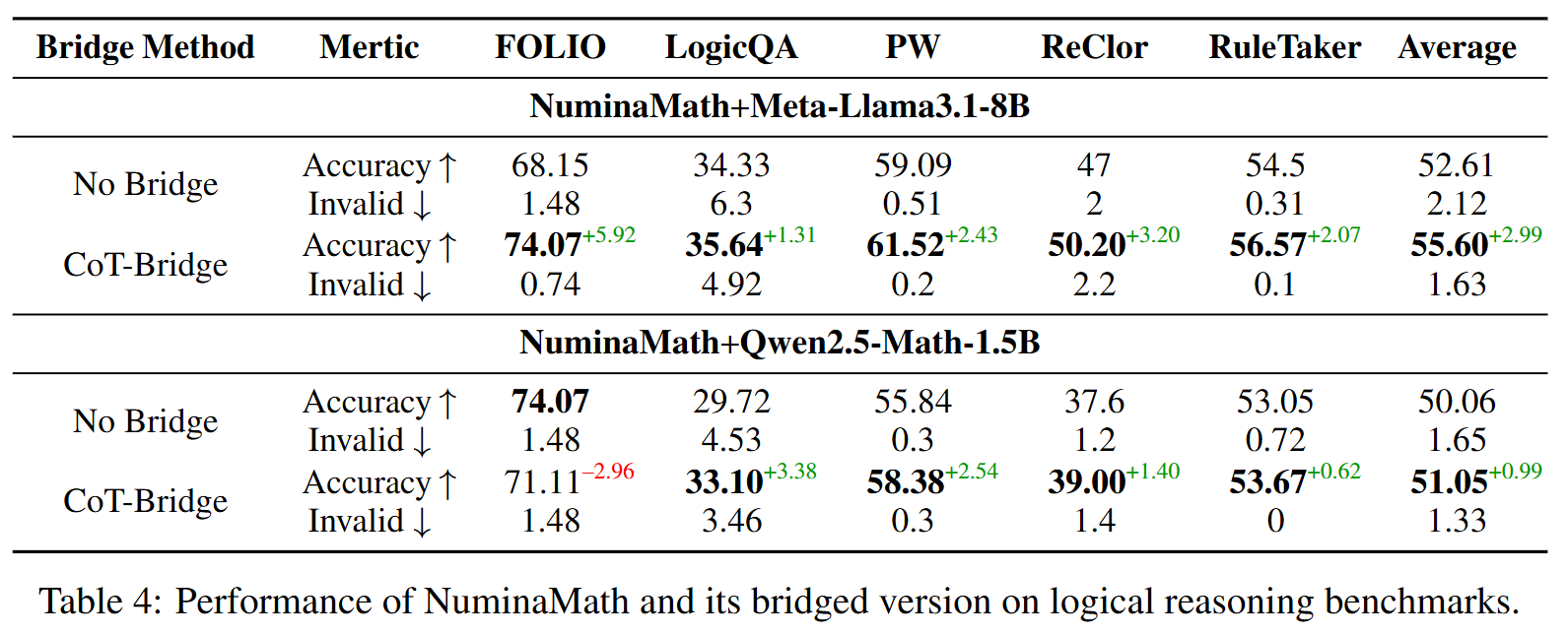 | ํค๋ณด๋ | CoT๊ฐ LLM์๊ฒ ์ ๋ง ๋ ผ๋ฆฌ๋ฅผ ๊ฐ๋ฅด์น๋ค๋ ๊ฑธ ๋ณด์ฌ์ฃผ๋ ๋ฏํ๋ค. CoT ๋ฐ์ดํฐ์ ์ด๋ฏธ ๋ ผ๋ฆฌ ๊ตฌ๋ฉ์ด ์์ ์ ์์ง๋ง, ์ง์ ๋ ผ๋ฆฌ bridge๋ฅผ ๋ง๋ค๊ณ ๊ทธ๊ฑธ ground truth bridge๋ก ์จ์ ํ์ตํ๋ ๋ฐฉ์๋ ๋ฉ๋์ด ์ ๊ฐ๋ค. ํ์คํฌ ์ผ๋ฐํ๊ฐ ๋๋ค๋ ๊ฒ๋ ๋ ผ๋ฆฌ ํ์ตํ๋ค๋ ๊ฑธ ๋ณด์ฌ์ฃผ๋ ๋ฏํด์ ํฅ๋ฏธ๋ก์ด ์ | 5 |