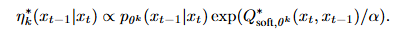 - ์ต์ ์ variational distribution ฮท*๋ "ํ์ฌ ๋ชจ๋ธ์ ํ๋ฅ ร ์ํํธ Q-ํจ์์ ์ง์"์ ๋น๋กํ๋ ๋ณผ์ธ ๋ง ๋ถํฌ