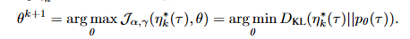 - E-step์์ ๋ฐ๊ฒฌํ ๊ถค์ ๋ค์ ๋ํด log-likelihood๋ฅผ ์ต๋ํํจ์ผ๋ก์จ ํ์ต = forward-KL minimization