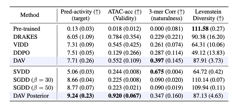 - DAV Posterior๋ reward(9.24)๊ณผ validity(0.920) ๋ชจ๋ ์ต๊ณ ์