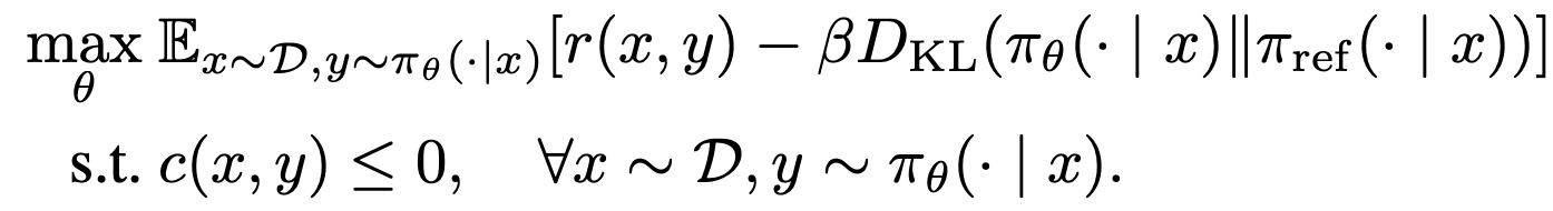 - Hard constraint: ๋ฐ๋์ ์ง์ผ์ผ ํ๋ ๊ท์น โ ๋ชจ๋ธ์ด ์ด๋ค ํ๋ฅ ๋ก๋ unsafe ๋ต์ โ๋ผ ์ ์์ผ๋ฉดโ ์ ๋๊ณ , ์์ ๊ทธ ๋ต๋ค์ ๋ํดย ํ๋ฅ ์ด 0์ด ๋๊ฒ ๋ง๋ค์ด์ผ ํจ