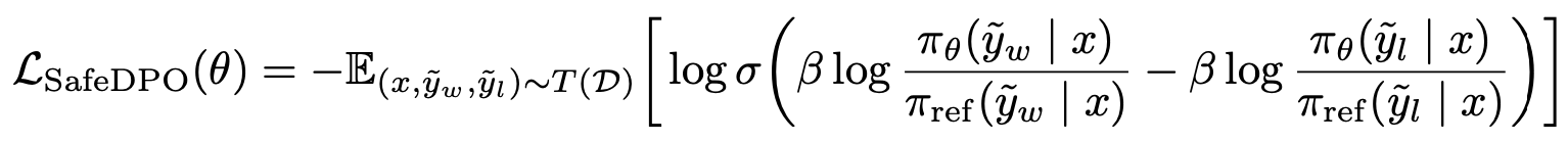 - ์ฌ๋ ์ ํธ ๋ฐ์ดํฐ๊ฐ ๋์๋จ์ ๋ ์ณ์ unsafe๋ฅผ winner๋ก ์ฐ์์ ์๋ ์์ง๋ง, SafeDPO์ ๏ปฟ ์ธ๊ณ์์๋ unsafe๋ -โ๋ผ์ ๋ฌด์กฐ๊ฑด loser์ฌ์ผ ํจ โ swap ํด์ safe๊ฐ winner๊ฐ ๋๊ฒ ๋ง๋๋ ๊ฒ
