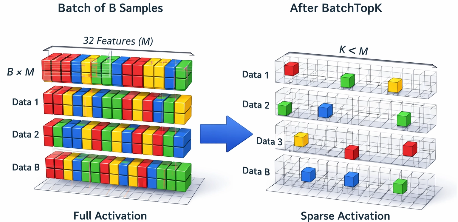 ๋ฑ ์จ๋จน์๋ฐ๊ฐ ์๋ค๋ ์ ์์ ๊ธฐ์น์ ๊ฒฐ์ด ์ฐธ ์ข์์ ๋จ์ : BatchTopK(32,4)๊ฐ ๊ฒฝํ์ ์ผ๋ก ์ ์ผ ์ข์๋ค๊ณ ํ๋๋ฐ ์ ์ข์์ง ์๋ฌธ์. ์ข ๋ latent space์ ํฌ๊ธฐ๋ฅผ ๋๋ ธ์ผ๋ฉด ๋ ๋ฏธ๋ฌํ ์ฐจ์ด๋ฅผ ์ก์๋ผ ์ ์์ง ์์์๊น? ์ ์: M๊ณผ K๋ฅผ ๋ค๋ฅด๊ฒ ํ ์คํ์ ๋ณด์์ผ๋ฉด ๋ ์ข์์ ๊ฒ ๊ฐ์ | 4.2 |