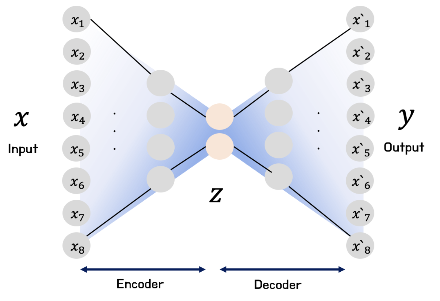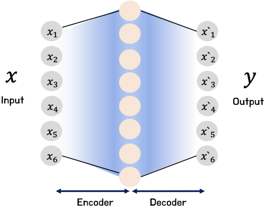 ๋ ฅ ๋ฐ์ดํฐ๋ฅผ ์์ถํ์ฌ ํต์ฌ ํน์ง์ ์ถ์ถํ๊ณ , ์ด๋ก๋ถํฐ ์๋ ๋ฐ์ดํฐ๋ฅผ ์ต๋ํ ์ ์ฌํ๊ฒ ๋ณต์ํ๋๋ก ํ์ตํ๋ ์ ๊ฒฝ๋ง