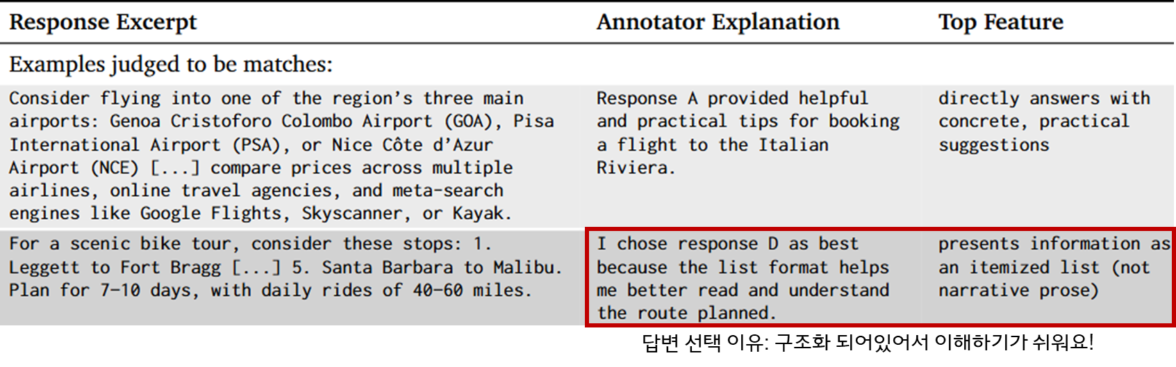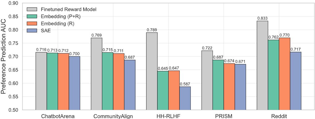 - Reward model์ ์ ํธ๋ฅผ ์์ธกํ ์ ์์ง๋ง ์ด๋ค ํน์ฑ์ด ์ ํ์ ์ ๋ํ๋์ง ์ค๋ช ํ์ง ๋ชปํจ