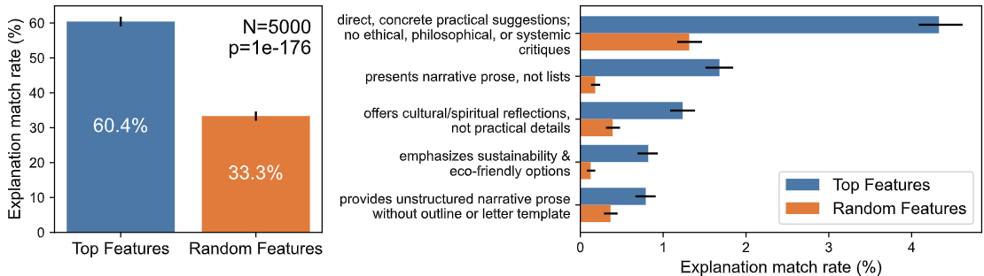 - Explanation match rate: LLM judge๊ฐ annotator explanation๊ณผ SAE feature๊ฐ ์ผ์นํ๋ ๋น์จ