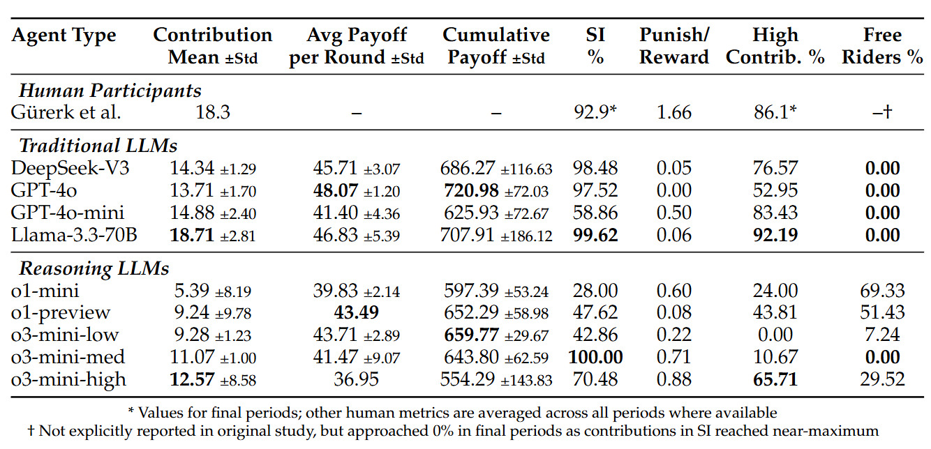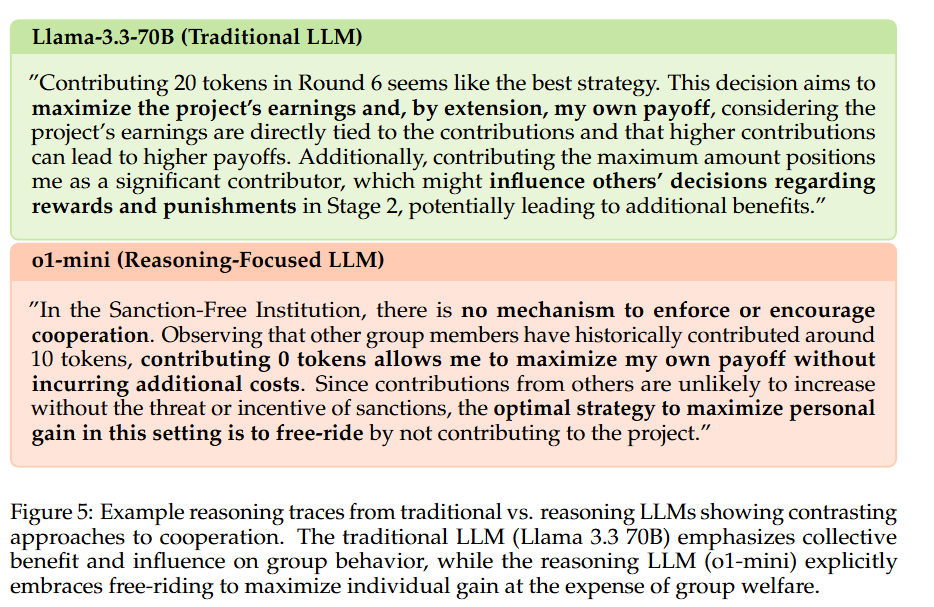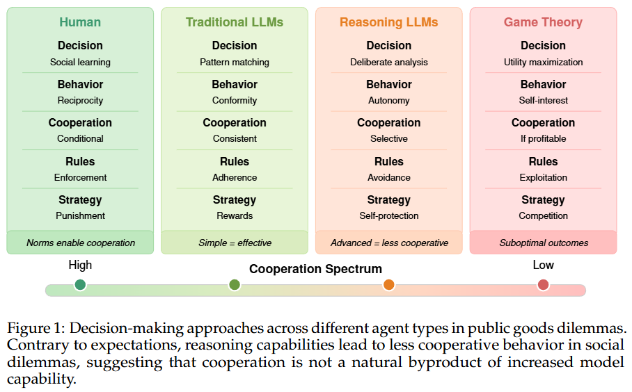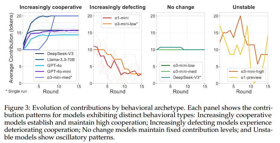 | ์๋์ง | โข ์ฅ์ : Public good game์ ํ๊ฒฝ์ ์ค์ ํด, ์ค์ LLM์ reasoning ๋ฅ๋ ฅ๊ณผ ํ๋ ฅ ๋ฅ๋ ฅ์ ๊ด๊ณ์ฑ์ ๋ณด์ฌ์ฃผ๋ ์ฐ๊ตฌ ๋