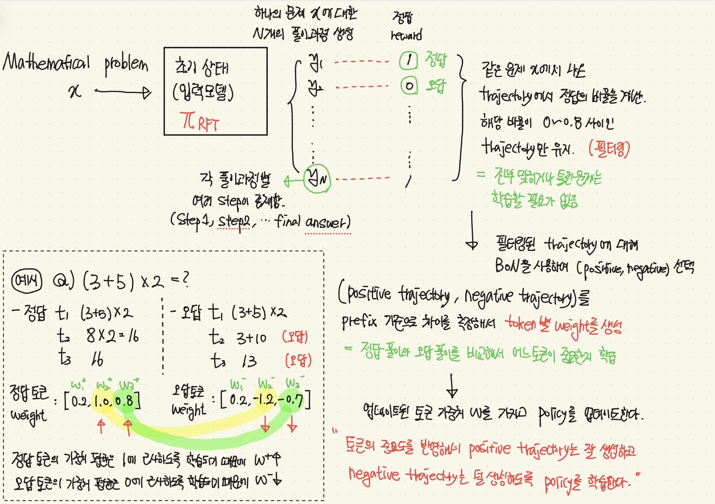 ๐กํ ํฐ์ ์ค์๋๋ฅผ ๋ฐ์ํด์, positive trajectory๋ ์ ์์ฑํ๊ณ , negative trajectory๋ ๋ ์์ฑํ๋๋ก plicy๋ฅผ ํ์ตํจ. (policy update)