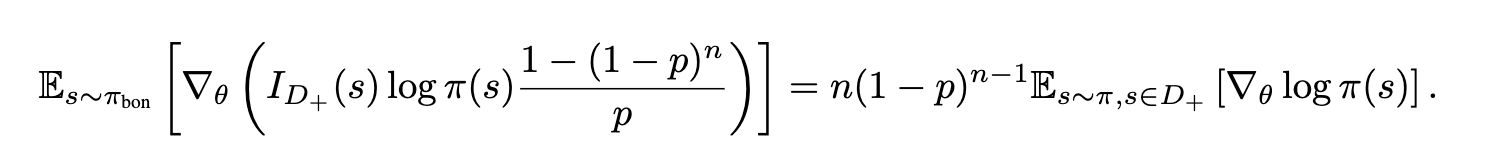 why?) ๋ ผ๋ฌธ์์๋ sampling์ ์ค๋ต์ด ๋ง์ด ๋ฝํ๋ ๋ฌธ์ ๋ฅผ ์ ์ ๋ก reward sparse๋ฅผ ์ง์ ํจ. ๋ฐ๋ผ์, ์ ์ด๋ ํ๋์ positive trajectory๊ฐ ์ ํ๋ ์ ์๊ฒ BoN์ ์ฌ์ฉํจ.