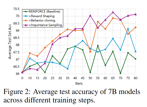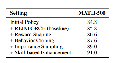 7B ๋ชจ๋ธ์์ ๊ฐ ๋ชจ๋์ ์ถ๊ฐํจ์ผ๋ก์จ ๊ธฐ์กด RL Baseline ์ฑ๋ฅ์ ์ํํ ์ ์์.
