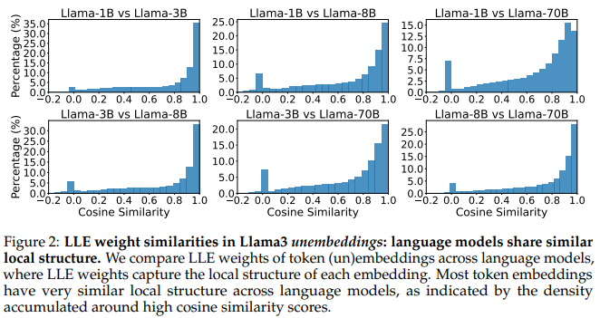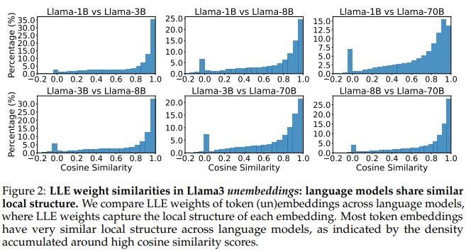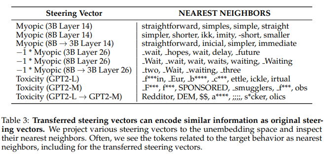 ๊ฐ์ ๊ณ์ด์ ์ธ์ด ๋ชจ๋ธ๋ค์ ์ฐจ์์ด ๋ฌ๋ผ๋ token embedding์ ๊ตฌ์กฐ๊ฐ ๊ต์ฅํ ๋น์ทํ๋ค! ๊ทธ๋์, ํ ๋ชจ๋ธ์์ ๋ง๋ค์ด๋ธ steering vector๋ฅผ ๋ค๋ฅธ ๋ชจ๋ธ์์ ์ ํ๋ณํ๋ง์ผ๋ก ์ฌ์ฌ์ฉ ๊ฐ๋ฅํ๋ค!